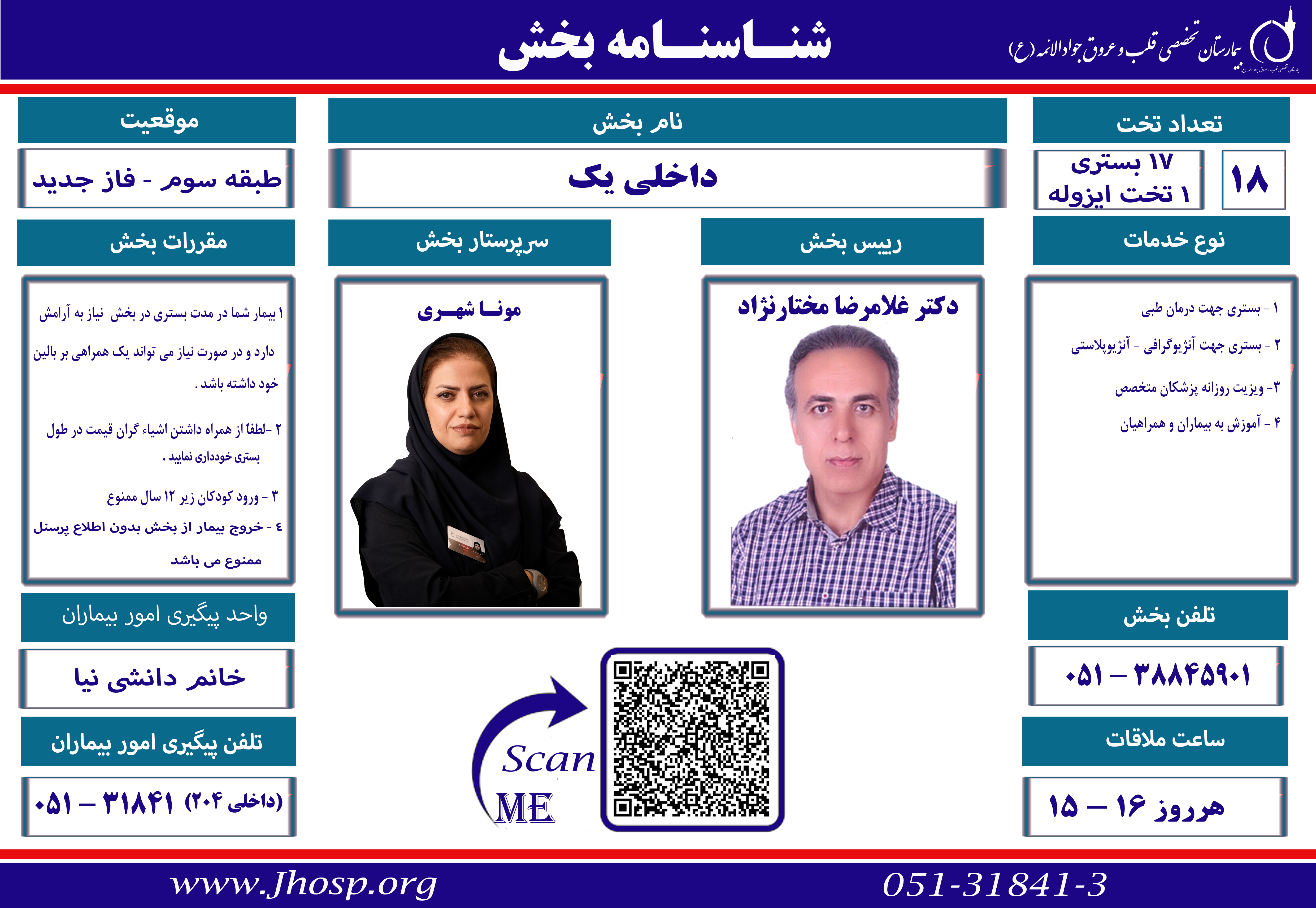 6.پرسنل این بخش بر آنند که بالاترین کیفیت خدمات درمانی را با رعایت اصل ایمنی و رضایتمندی بیمار ارائه نمایند.